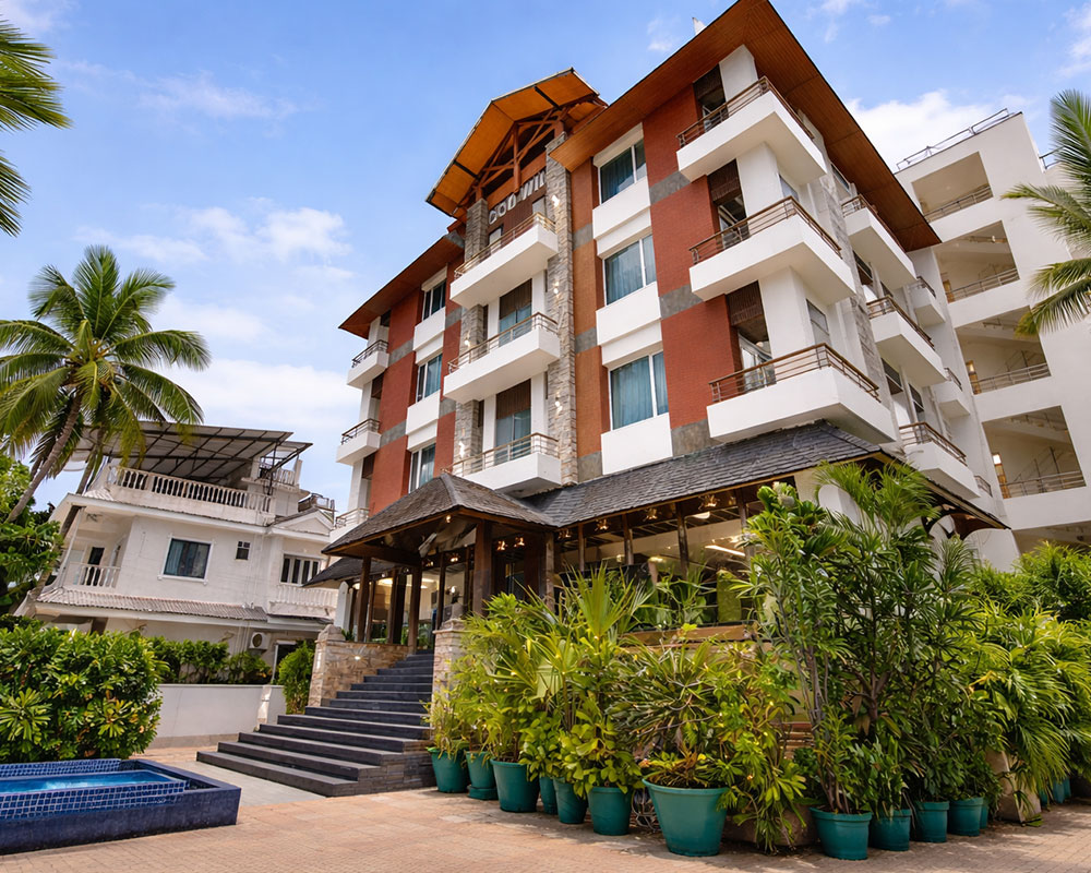 Fort Aguada Rd, opp. Cafe Coffee Day, Candolim, Goa 403515Nestled in the heart of North Goa, Godwin Hotel offers a peaceful retreat surrounded by lush greenery and vibrant energy. With modern rooms and exceptional service, it provides the perfect blend of comfort and convenience for travelers looking to explore 4-star hotels Candolim Beach Goa, luxury hotels in Candolim Beach Goa, and hotels near Candolim Beach Goa.